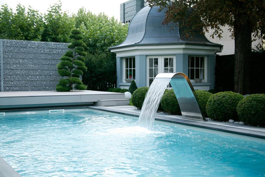 • Impozantné románske schodisko: Široký a bezpečný vstup, ktorý sa stáva dominantným estetickým prvkom celého bazéna.
